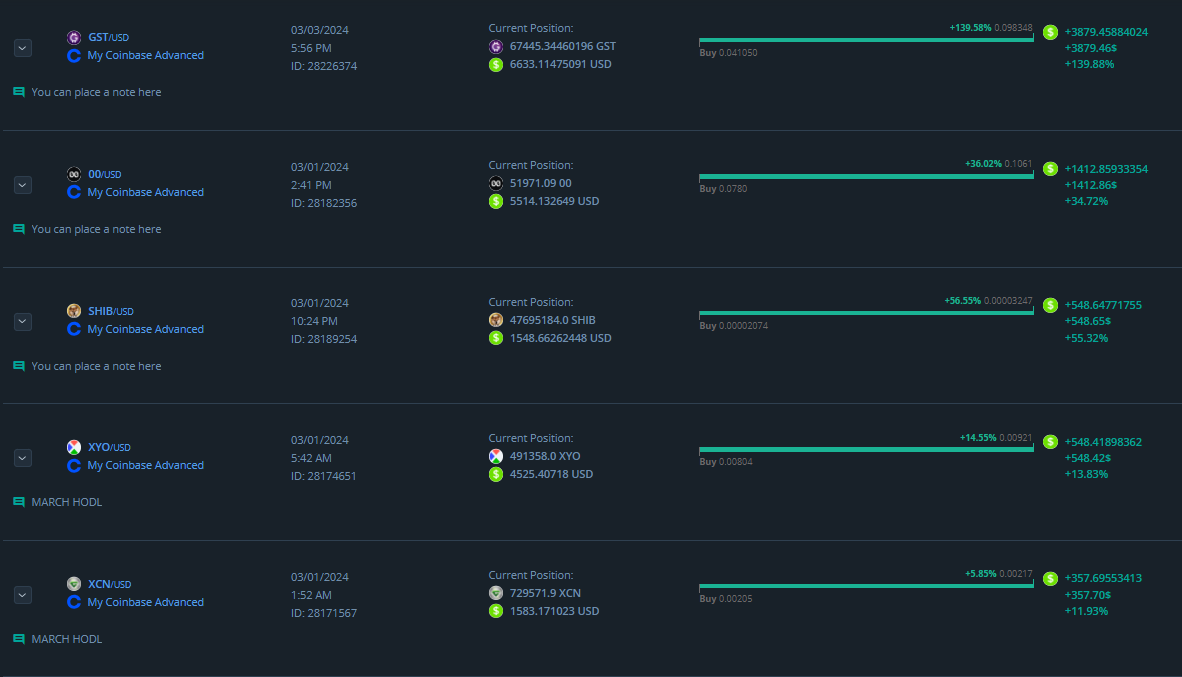 Like Maro K. who just made 20.39% in 31 minutes (4/3/2024), or bettertraderjim who shared he was on 57 trades in a row in profit (3/4/2024) and 74 trades in a row in profit (3/25/2024), or stuhall68 who showed an increase of $4,699.01 in 7 days (3/25/2024), or ahimza whose bot made 19.66% in 2 days (3/20/2024), and so many others.